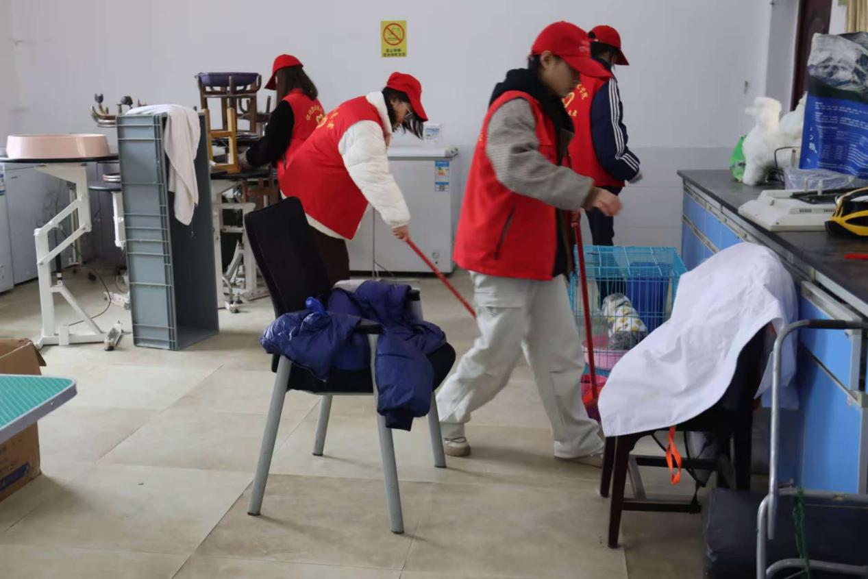 活动中,志愿者们担任野生动物科普员,向同学们讲解了野生动物的种类、保护野生动物的目的和意义、野生动物智慧保护体系的构成和作用;同时积极宣传我院经市林业局批准建立的双佳野生动物救护站,希望提升同学们对野生动物保护的意识。此外,志愿者们还对救护站进行卫生清洁,针对不同清洁区域进行细致分工。任务分配完后,志愿者们手持各式消毒工具,擦拭着诊疗台、清洁笼舍、消毒器具,认真清理地面散落的垃圾。他们还对救护站外面的一些区域进行仔细的清理。在大家共同努力下,救护站变得焕然一新,为患病动物营造了洁净的康复环境,用实际行动传递了人与动物和谐共处的温暖理念。